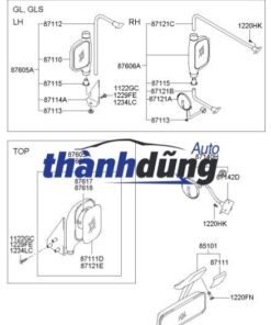 GỌNG GƯƠNG TRÁI KIA K3000 | 0K60A69110E (có tên tiếng Anh là Stay Ossy O/S Mirror) là một bộ phận quan trọng trong hệ thống lắp đặt gương ngoài. Bộ giá đỡ gương ngoài O/S (bộ giá đỡ gương bên phải) có nhiệm vụ làm giá đỡ hoặc giá đỡ gắn chặt gương bên phải (O/S) vào xe. Nó được thiết kế để cung cấp sự hỗ trợ cấu trúc, đảm bảo gương gắn chắc chắn vào xe, ngay cả khi chịu tác động của rung động, sức cản gió hay va chạm bên ngoài. Thành phần này rất quan trọng để đảm bảo gương ngoài ổn định và căn chỉnh chính xác, giúp người lái có tầm nhìn rõ ràng và điều kiện lái xe an toàn.