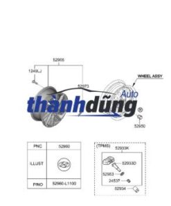 MÂM ĐÚC HYUNDAI HD65 | 529104F330 hay còn gọi là La zăng đúc (Wheel Assy-Aluminium) được lắp đặt tại bốn bánh xe của xe ô tô. Bánh trước: La zăng đúc được lắp đặt tại trục bánh trước của xe. Bánh sau: La zăng đúc được lắp đặt tại trục bánh sau của xe. Mâm đúc được cấu tạo từ các bộ phận chính sau: Vành la zăng: Vành la zăng là bộ phận chính của la zăng, được làm từ hợp kim nhôm hoặc thép. Vành la zăng có thiết kế dạng vòng tròn, có các khe hở để lưu thông khí. Bích la zăng: Bích la zăng là bộ phận kết nối la zăng với trục bánh xe. Bích la zăng được làm từ thép hoặc hợp kim nhôm, có nhiều lỗ để bắt bu lông. Núm la zăng: Nút la zăng là bộ phận giúp cố định lốp xe trên la zăng. Nút la zăng được làm từ thép hoặc nhựa, có nhiều kiểu dáng khác nhau.