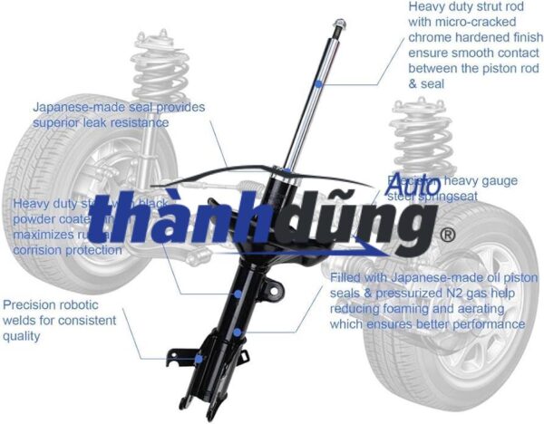 PHUỘC NHÚN SAU TOYOTA INNOVA 2015 là 1 trong những bộ phận đóng vai trò quan trọng trong hệ thống treo trên xe ô tô.Nó bao gồm hai thành phần chính: ống giảm xóc và piston. Khi xe di chuyển trên bề mặt không bằng phẳng hoặc gặp va chạm trên mặt đường, ống giảm xóc sẽ nén và giãn để hấp thụ lực va đập. Trong ống giảm xóc, có một chất lỏng (thường là dầu) và một piston di động. Đây là chi tiết đóng vai trò quan trọng giúp chúng hấp thụ những rung động khi đi qua những cung đường sóc, ổ gà và đồng thời giữ cho xe của bạn di chuyển êm ái và ổn định. Đặc biệt, giảm xóc ô tô là chi tiết cũng giúp cho việc hấp thụ những năng lượng của lò xo và giữ cho xe luôn được cân bằng tránh hiện tượng xe bị nãy xe quá mức. Khi xe di chuyển trên đường xấu hoặc bị va chạm, giảm xóc giúp hấp thụ và giảm lực va đập, ngăn chặn sự rung lắc và duy trì sự cân bằng của xe. Phuộc ô tô hãng nào tốt với xe bạn còn tùy thuộc vào dòng xe và đời xe sẽ có những loại phù hợp. Giảm xóc của ô tô áp dụng dao động tắt dần, nguyên lý của bộ giảm xóc là sử dụng chuyển động tịnh tiến của phuộc nhún, có thể biến động năng thành nhiệt năng rồi đưa vào trong ống thủy lực. Xe ô tô luôn phát sinh ra một lực dao động tự do và truyền chúng vào thân xe, lực này cũng sẽ tác động tới những người ngồi trên xe khiến người ngồi cảm giác mất thoải mái. Để triệt tiêu được hoàn toàn những dao động này, người đưa cần dùng tới bộ phận giảm xóc xe ô tô, giữ sự cân bằng cho xe.