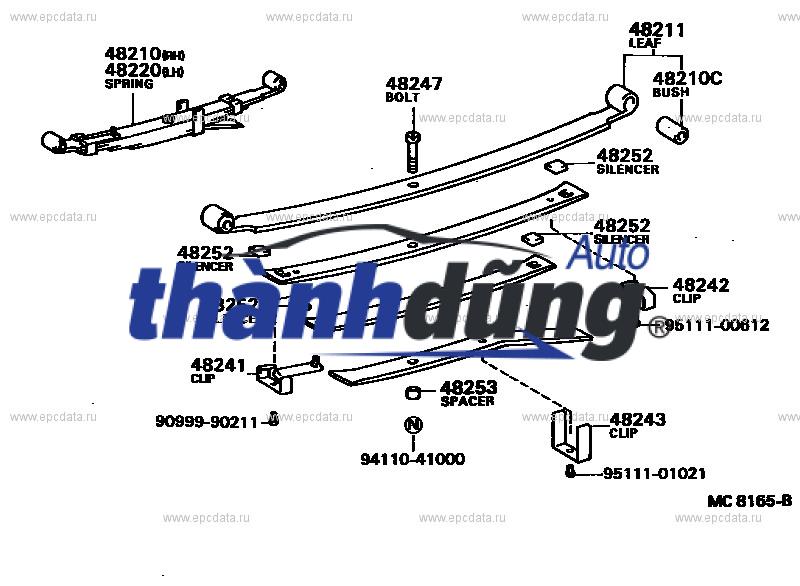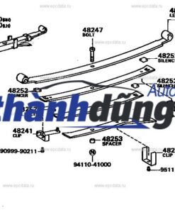 Quang treo nhíp (Shackle Assy-RR Spring) được lắp đặt ở hai đầu của mỗi lá nhíp. Quang treo nhíp có nhiệm vụ: Chịu lực kéo và nén lớn từ các lá nhíp. Chuyển động linh hoạt theo hướng dọc và ngang của xe. Giúp hệ thống treo hoạt động êm ái và hiệu quả. Quang treo nhíp còn được gọi là bu lông nhíp, chén nhíp, v.v.Cần kiểm tra định kỳ tình trạng của quang treo nhíp, đảm bảo không bị nứt vỡ, mòn hoặc biến dạng. Thay thế quang treo nhíp mới khi cần thiết để đảm bảo an toàn và hiệu quả hoạt động của hệ thống treo.