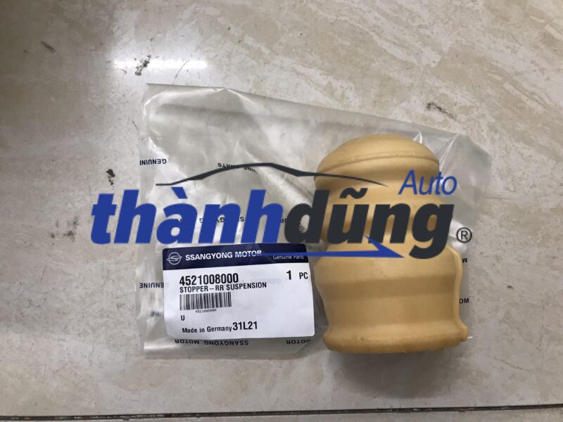 TĂM BÔNG GIẢM XÓC SAU SSANGYONG KYRON – 4521008000. Sản phẩm cao cấp chính hãng SSANGYONG xuất xứ Hàn Quốc, nhập khẩu và phân phối bởi Thành Dũng Auto đáp ứng đầy đủ các tiêu chuẩn xuất khẩu, chất lượng chính hãng, giá tốt nhất.