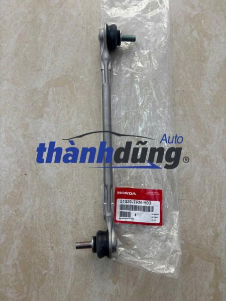 THANH CÂN BẰNG TRƯỚC HONDA CRV 2018 | 51320-TRN-H03 thuộc hệ thống treo của ô tô. Rotuyn cân bằng còn được gọi là thanh cân bằng hoặc thanh cân chỉnh, là một phần của hệ thống treo của ô tô. Được thiết kế với 2 khớp rotuyn – một đầu liên kết với moay ơ bánh trước, một đầu kết nối với thanh cân bằng. Chức năng của rotuyn thanh cân bằng là đảm bảo khả năng vận hành ổn định, giữ thăng bằng cho thân xe, đồng bộ khung xe, thanh cân bằng với 2 bánh trước (bánh đánh lái). Nhờ rotuyn này, xe có thể di chuyển ổn định trên đường, kết hợp với rotuyn lái điều hướng xe. Nếu trên đường gặp chướng ngại vật, đường gồ ghề, người lái cảm nhận xe lắc lư thì nên kiểm tra lại rotuyn thanh cân bằng.Giảm rung lắc và dao động của phương tiện khi di chuyển. Cân bằng tải trọng giữa hai bánh xe phía sau, đặc biệt là khi phương tiện không cân đối hoặc chở hàng nặng phía sau. Rotuyn cân bằng được ví như cánh tay để nâng đỡ cho phần khung của ô tô, giúp xe luôn vận hành ổn định và êm ái trong mọi khung đường, kể cả những đoạn đường gồ ghề, khó đi. Bộ phận này kết nối hệ thống treo và hệ thống truyền động của ô tô. Rotuyn cân bằng do thường xuyên phải hoạt động nên rất dễ bị bào mòn, hỏng hóc. Trong một số trường hợp khác, việc bị va đập mạnh cũng là nguyên nhân dẫn đến hư hỏng bộ phận này. Một trong những lý do gây tai nạn ô tô nghiêm trọng xảy ra đó chính là vì tài xế bị mất lái. Và hỏng Rô tuyn ô tô là một nguyên nhân khách quan dẫn đến sự cố này.