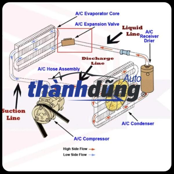 VAN TIẾT LƯU NISSAN TEANA 2009-2012 | 922003TT0A thuộc hệ thống điều hòa của ô tô. Van tiết lưu có cấu tạo kiểu van vuông bởi các chi tiết như: cảm biến nhiệt, lò xo van, vỏ bọc van, kim van, màng ngăn và lỗ tiết lưu. Khi tải nhiệt thấp, nhiệt độ tại cửa ra giàn lạnh hạ xuống khiến cho nhiệt độ truyền tới màng ngăn cũng giảm. Điều này sẽ khiến gas lạnh co lại, lỗ tiết lưu cũng khép lại và làm giảm mức độ lạnh của hệ thống. Ngược lại, khi tải nhiệt cao, nhiệt độ tại cửa ra của giàn lạnh tăng lên khiến cho nhiệt độ truyền tới màng ngăn tăng. Vì thế mà gas lạnh giãn ra, khiến lưu lượng tuần hoàn trong hệ thống lạnh tăng. Thông qua van tiết lưu điều hòa, sự chênh lệch nhiệt độ và áp suất này được điều chỉnh giúp quá trình làm lạnh được ổn định, phù hợp với tải nhiệt của xe ô tô.